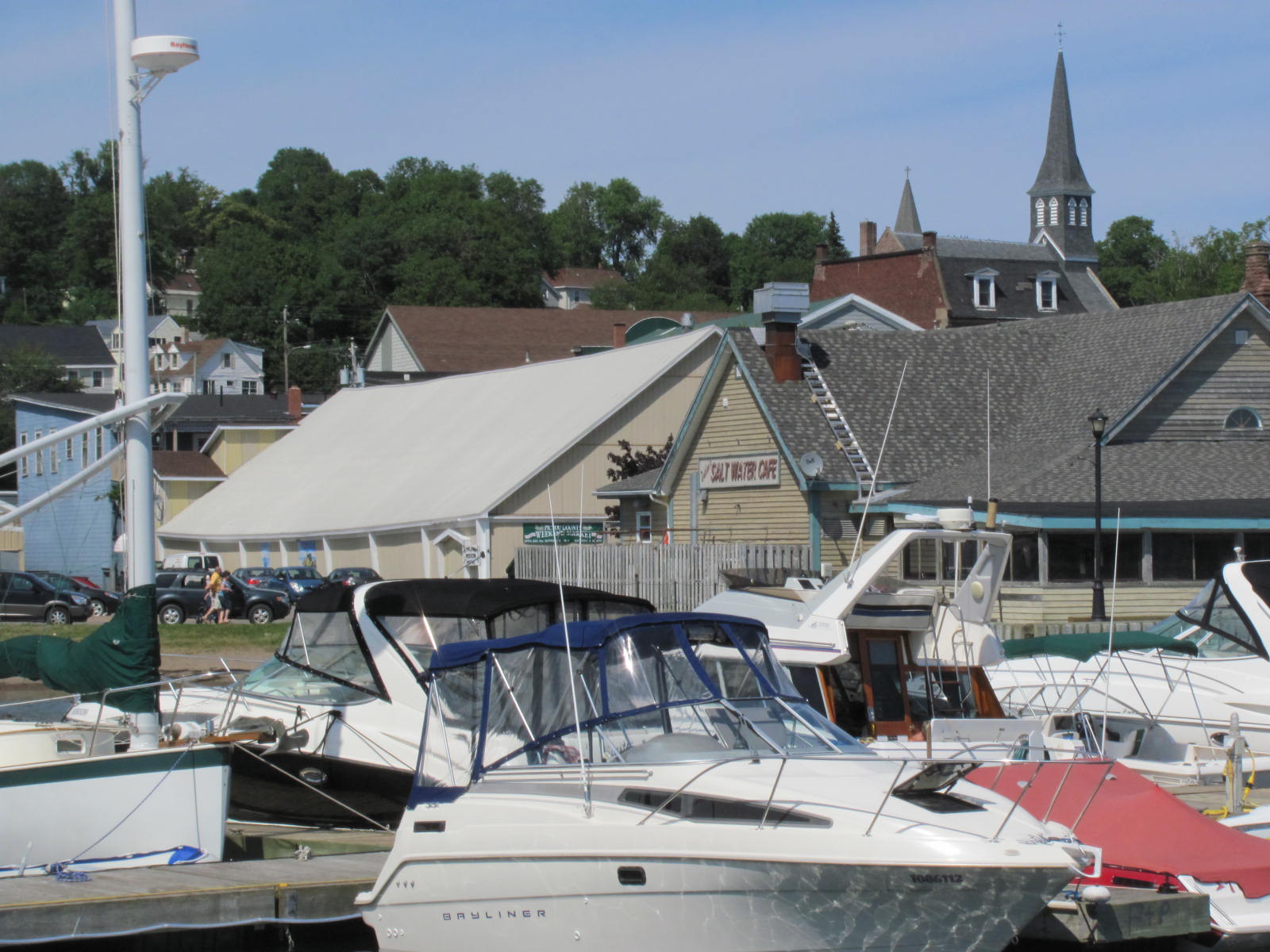 Down to Pictou. What a quaint neat looking village / town. The architecture stands out. Neat old buildings down to the marina. The harbor is NOT a working marina... too many pleasure boats... the warf lined by tourist shops and restaurants.